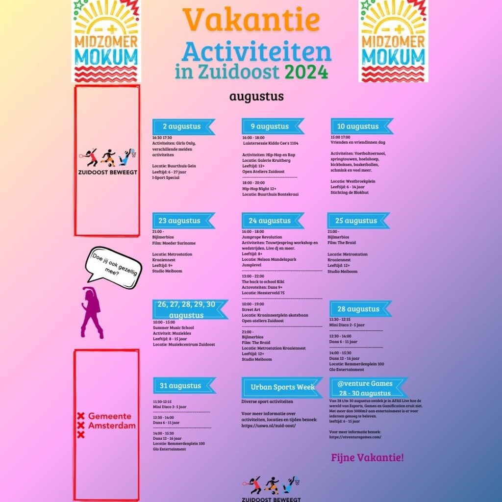 De zomervakantie staat weer voor de deur, er zijn weer de nodige activiteiten voor de bewoners van Zuidoost!