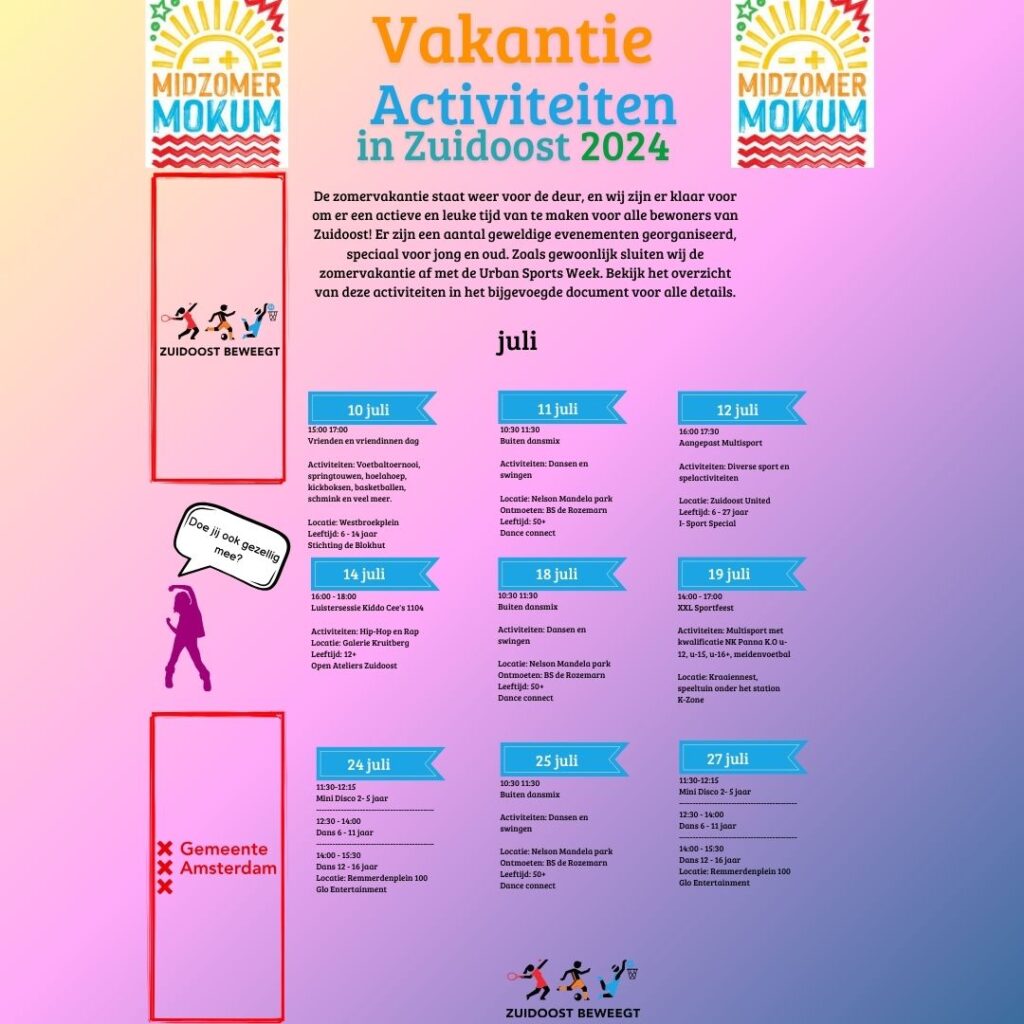 De zomervakantie staat weer voor de deur, en wij zijn er klaar voor om er een actieve en leuke tijd van te maken voor alle bewoners van Zuidoost!