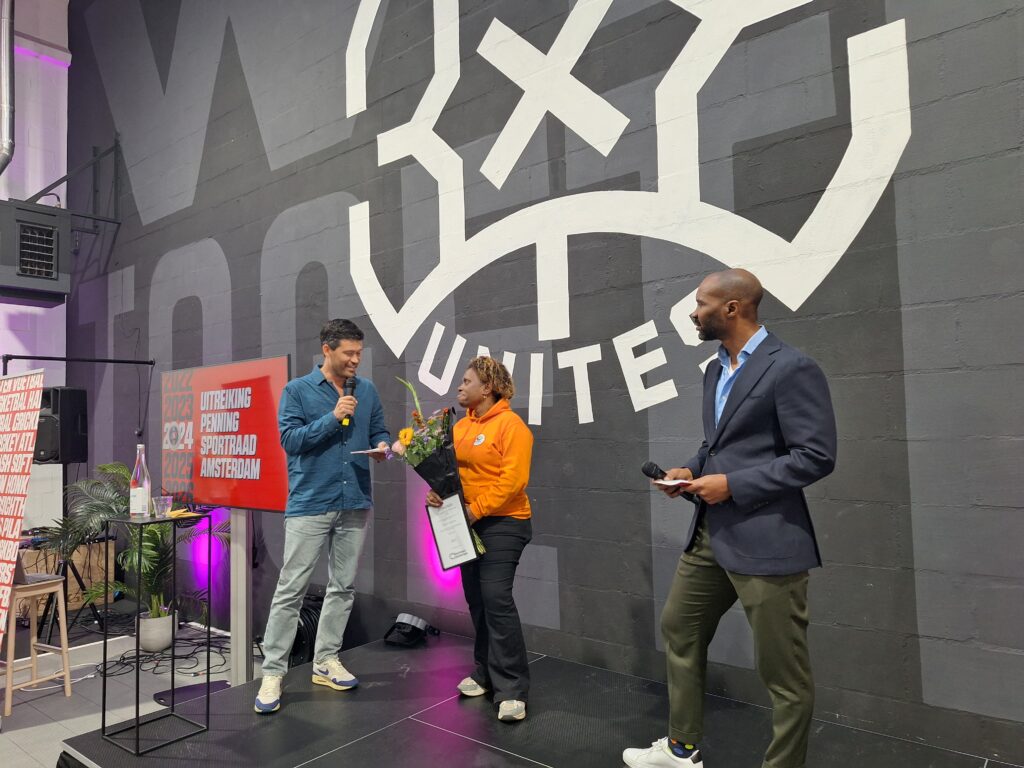 Tijdens een geanimeerd samenzijn in Zuidoost (bij de organisatie 3×3 Unites), is de Penning Sportraad 2024 van de Sportraad Amsterdam uitgereikt. Een jaarlijkse traditie, alweer de 14e keer, waarbij menigmaal er een nominatie uit Zuidoost was. Zo ook deze editie, twee nominaties maar liefst (van de vijf): Maartje Scheepstra, Verenigingsmanager bij hockeyvereniging Amsterdam Dynamics en Duncan Waardenburg van tennis- en padelclub TPC Gaasperpark. De Penning Sportraad ging echter naar een organisatie van buiten Zuidoost: ‘Boogie Foundation’. Nu nog niet actief in Zuidoost, wel hangen hun boksballen in de openbare ruimte(s) van andere stadsdelen. De prijs voor de Topsporter van 2024 van Amsterdam (een nieuwe prijs) ging naar onze goudenmedaillewinnaar: 3×3 basketbalspeler Worthy de Jong.