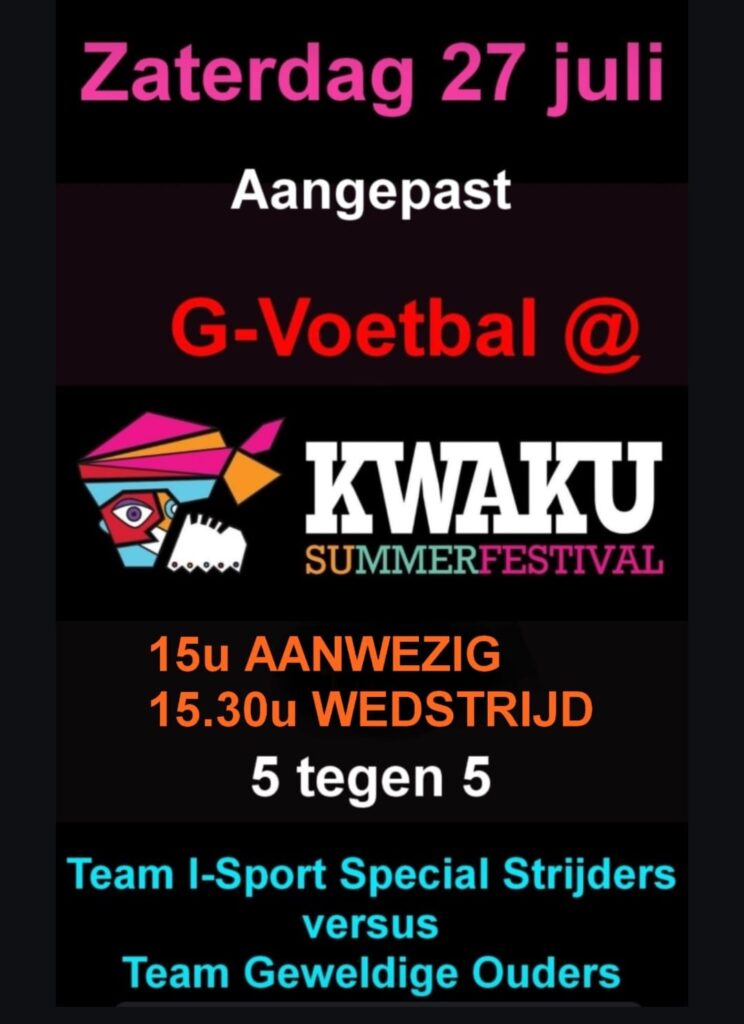 Kwaku 2024 is weer voortvarend begonnen, met vooral veel cultuur maar ook sport. En niet te vergeten een breed aanbod van eten en drinken. Afgelopen vrijdagavond de heerlijke EWF-sound in het park. Uiteraard voetbal tijdens het festival maar deze zaterdagmiddag ook G-voetbal waar een ieder van harte welkom is. Zie flyer.